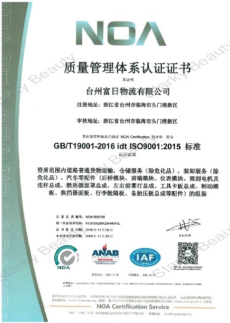 2017年02月 成立:臺州富日物流有限公司
