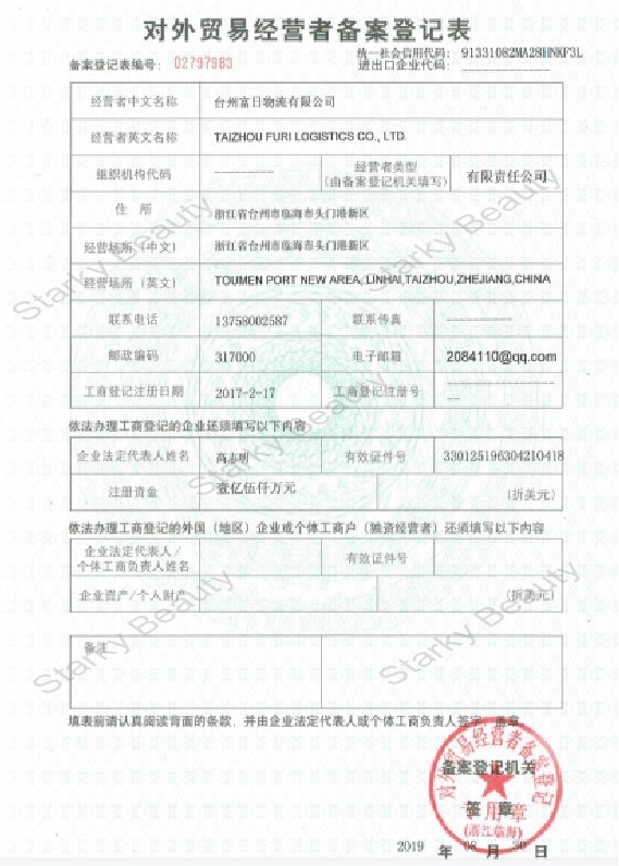 2019年11月 浙江富迪利進出口有限公司